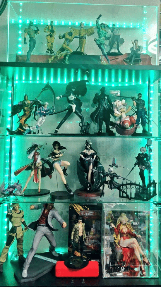 妻子离世后,他彻底投入手办收藏,房间里摆满了各类二次元模型,其中《尼尔》2B 手办是他的最爱。