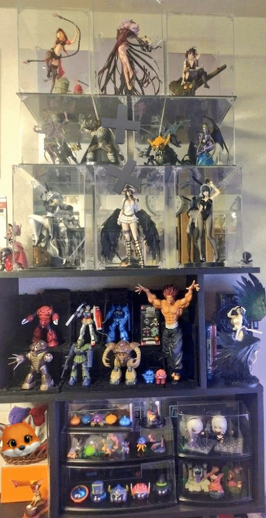 他还晒出多张手办柜照片,展示了整齐陈列的大量美少女手办,可见其投入程度。