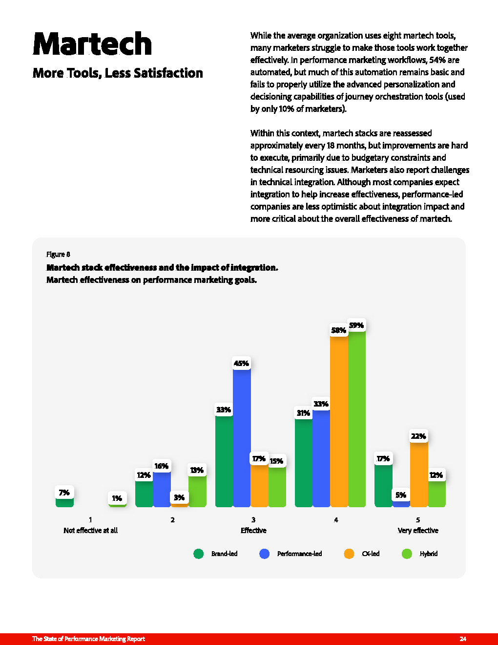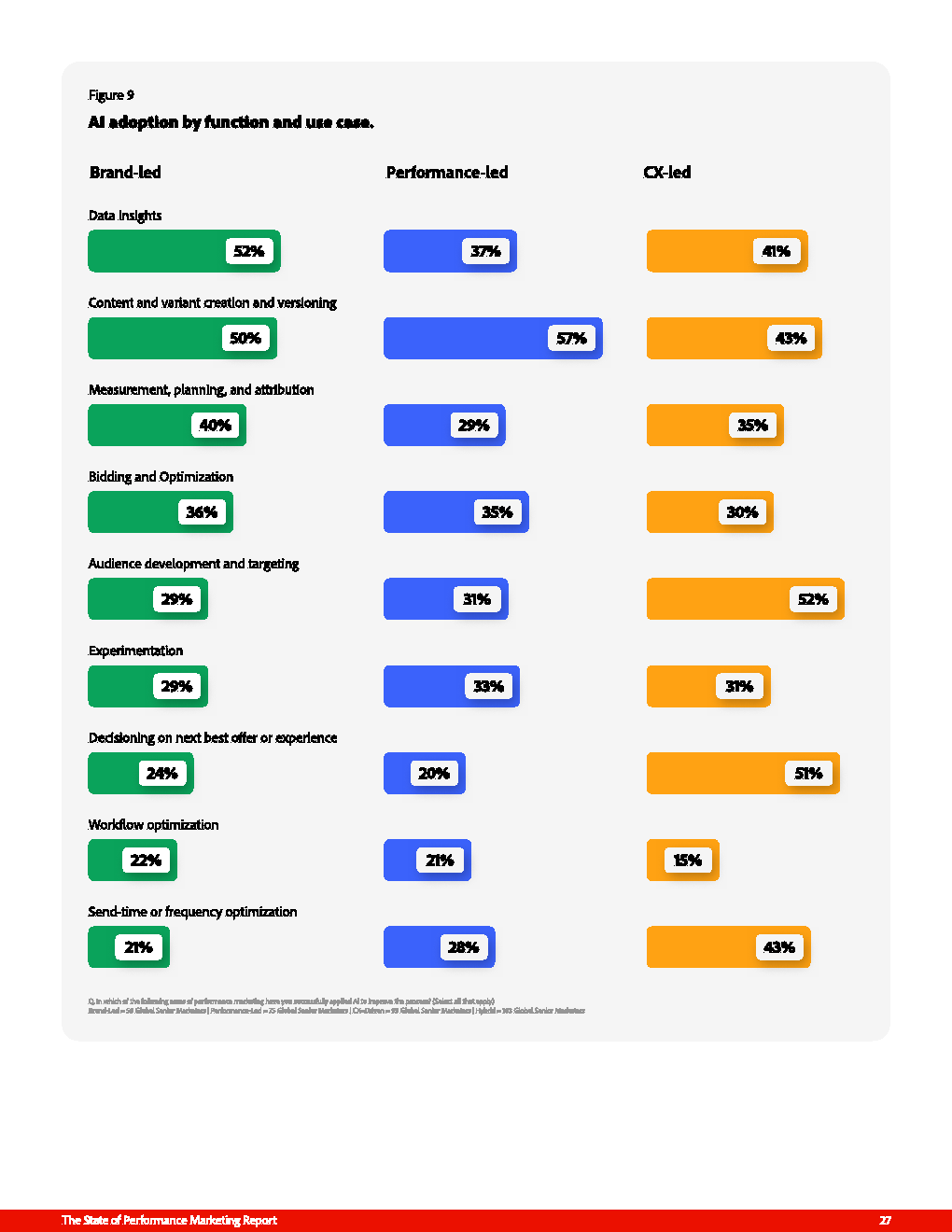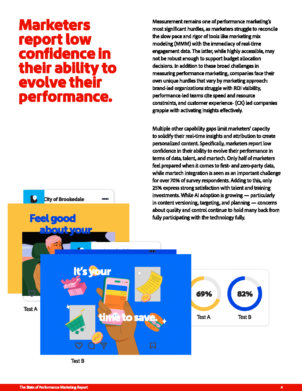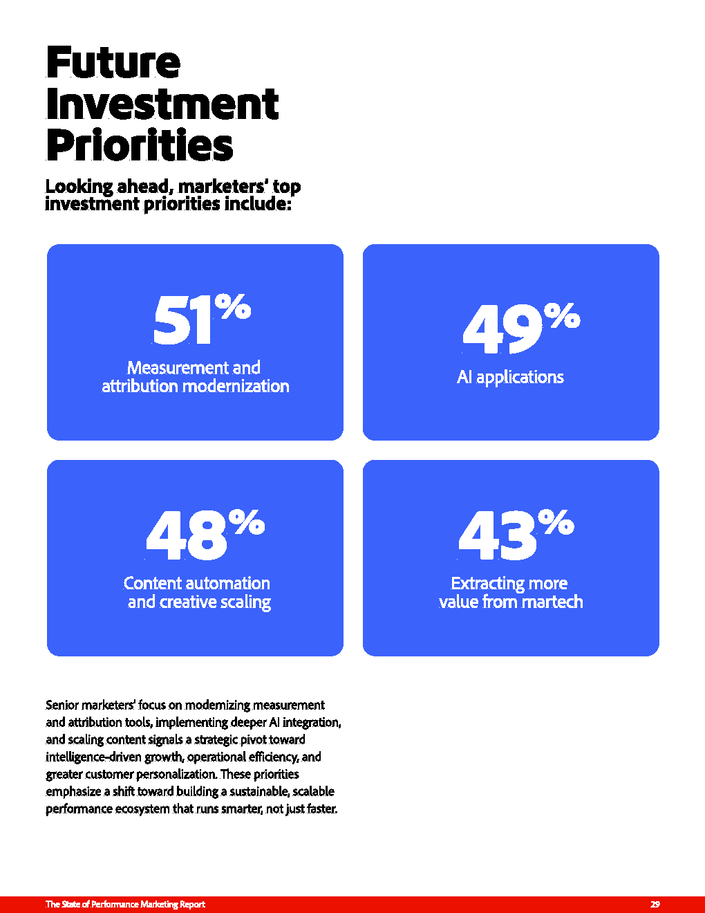 与此同时,内容能力正成为新的增长瓶颈。49%的企业面临内容生产速度不足,48%难以实现个性化规模化,45%受制于审批与合规流程。这意味着,即便数据与洞察具备,若内容供给无法匹配,绩效营销仍难以转化为实际增长动能。