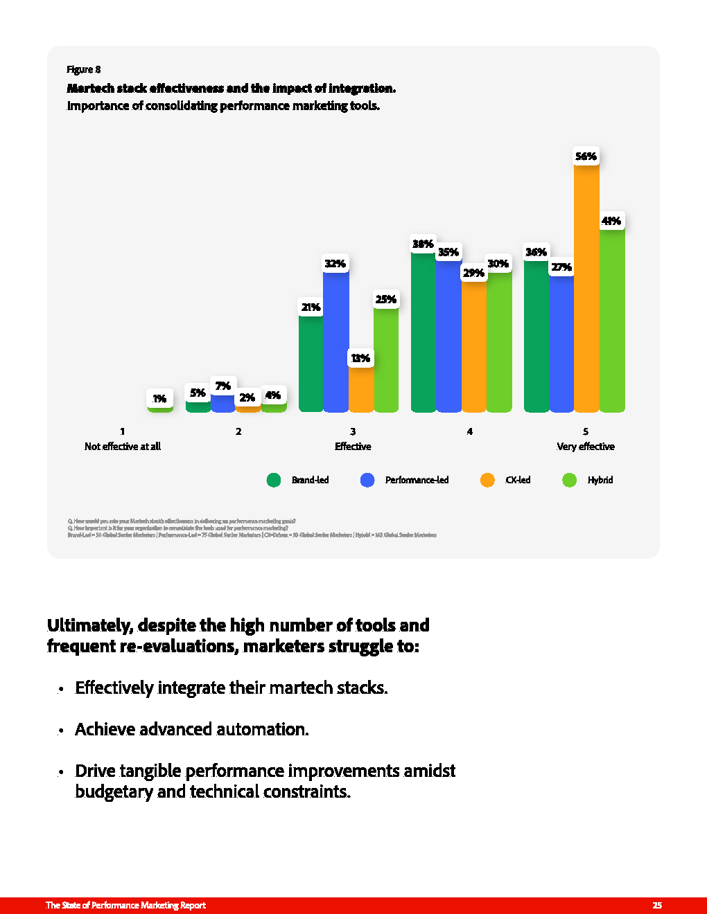 衡量体系的滞后进一步放大上述问题。品牌导向企业中54%难以证明ROI,绩效导向企业中58%受制于洞察滞后,而CX导向企业中65%无法实现数据的实时激活。这种“执行速度快于认知速度”的断裂,使营销优化更多依赖经验而非证据,直接削弱预算配置效率与策略迭代能力。