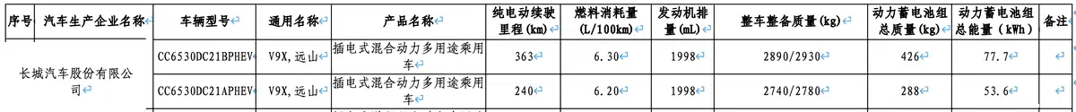 最大纯电续航 363km,长城魏牌 V9X 插混 SUV 续航信息出炉