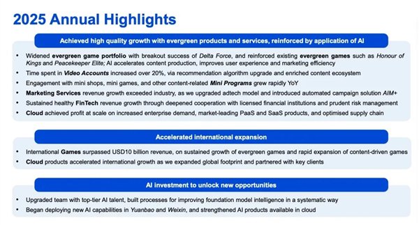 官方材料提到,公司已经升级 AI 团队、引入顶级 AI 人才、系统化提升基础模型能力,并把新 AI 能力部署到元宝、微信等服务中;
