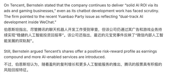 不过这倒不是因为降薪裁员啥的,投行Bernstein分析师在今年2月就判断说:腾讯持续通过游戏和广告业务实现了稳健的回报。