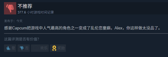 正因为如此,当欧美玩家看到Alex与帕特丽夏在最新版本中结婚,甚至连孩子都有了之后,引发了相当强烈的抵触情绪,当天的不少差评都和游戏的最新剧情有关: