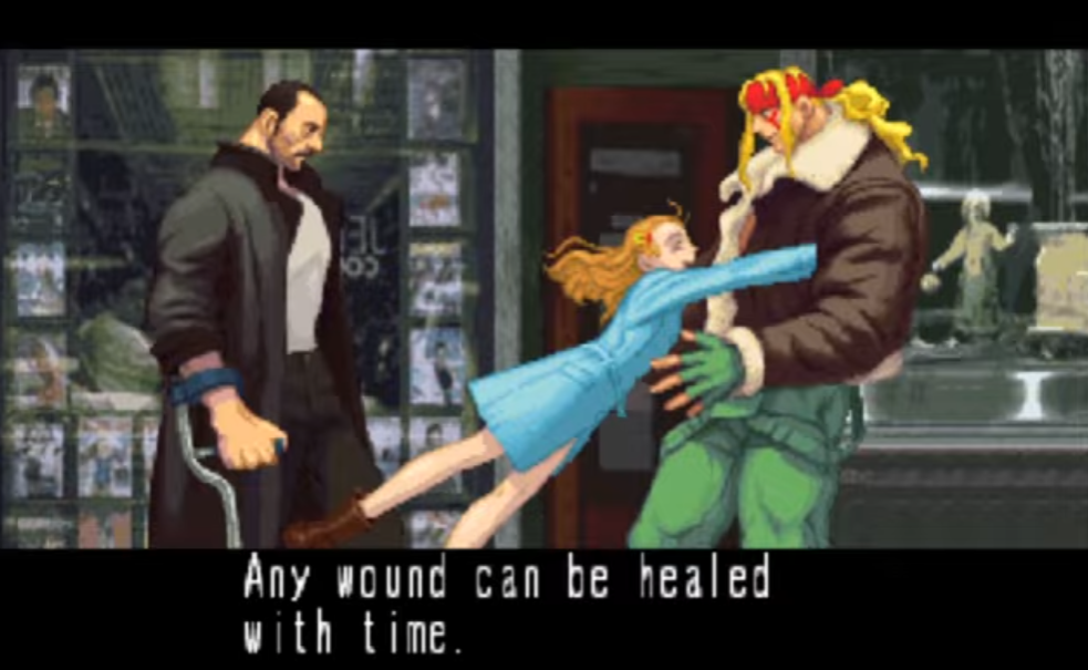 剧情中Alex的妻子帕特丽夏同样是老角色,在《街霸3》中的设定是Alex养父的女儿,因此这两人算是名义上的兄妹。根据当时游戏的剧情表现,Alex和帕特丽夏无论是年龄还是体型都相差过大,另外在前代游戏中,这两人体现出的更多也是兄妹之情,并没有男女感情的刻画。