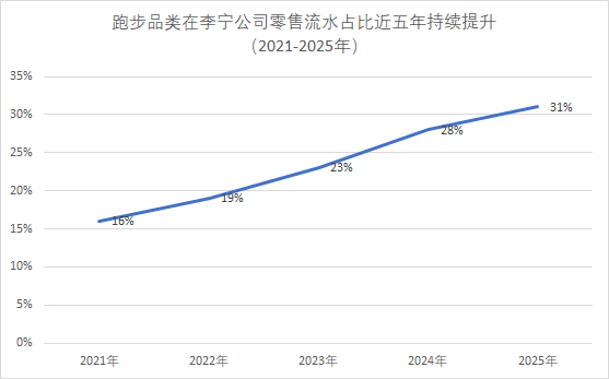 数据显示,2025年,李宁的专业跑鞋销量突破2600万双,其中,核心IP飞电、赤兔、超轻三大系列新品销量超1100万双,跑步品类零售流水的占比已经提升至31%,成为李宁集团的第一大品类。