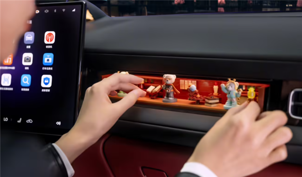 副驾专属设计灵感橱窗,带有钢化玻璃盖板,支持DIY改装,可作为手办展台、电子墨水屏或光影香氛使用,同时配备磁吸固定与供电拓展功能。