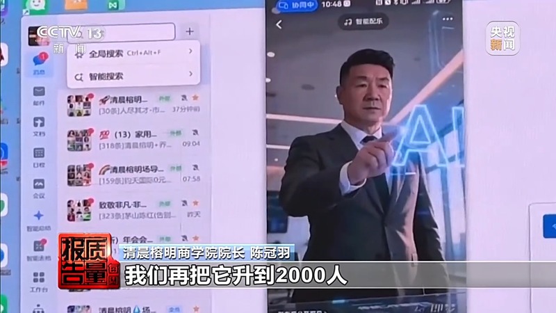 清晨榕明商学院院长 陈冠羽:我们的流程是先从线上将用户引流到私域,也就是微信社群,再进一步引导到线下。随后,通过老师讲课进行转化,促成成交,使他们成为我们的客户。目前我们的会议室规模是1000人,先按这个标准运行一段时间。由于当前国家政策管控较严,等到3月15日之后,如果运营稳定,我们再把规模扩大到2000人。