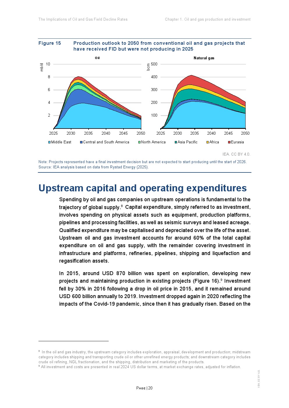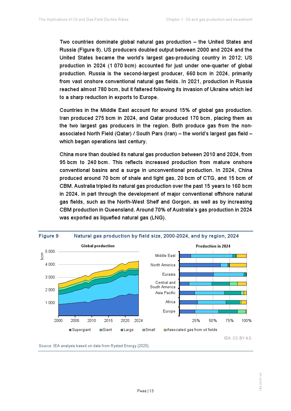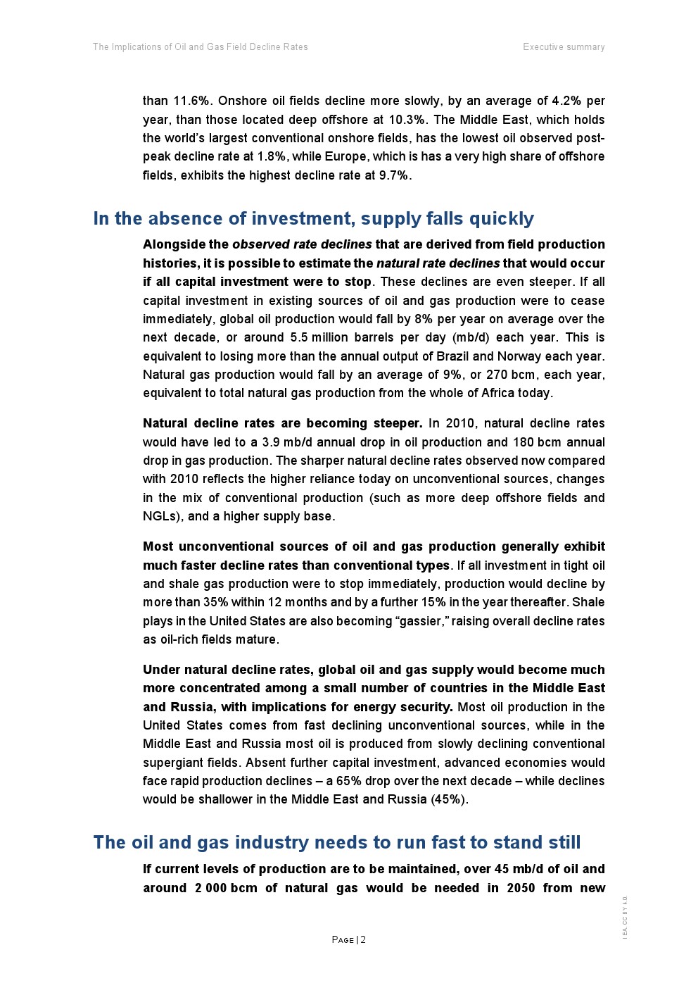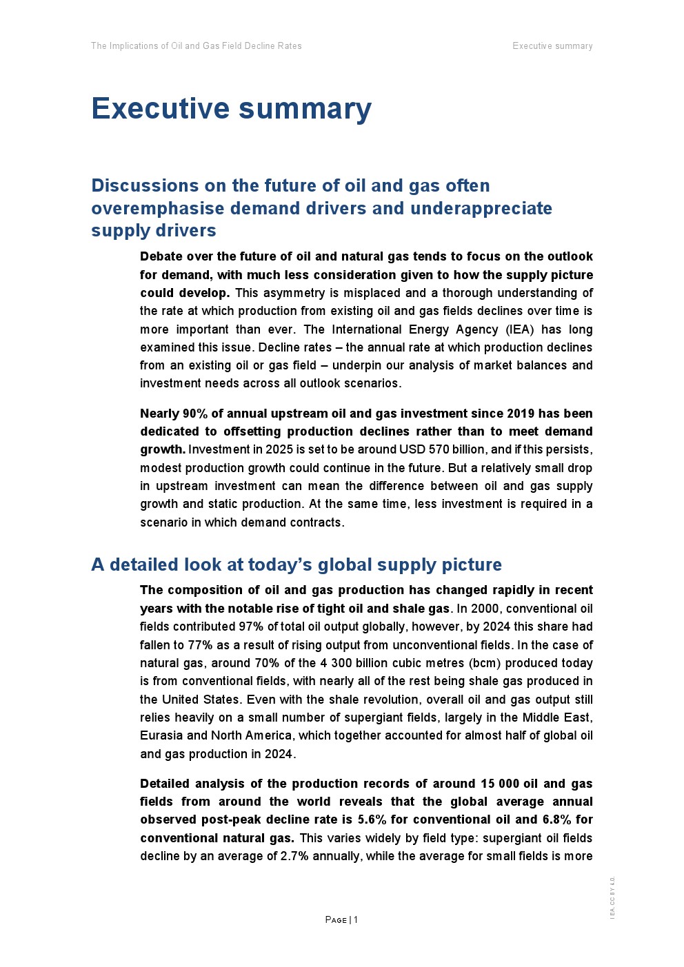 更关键的是“自然递减率”。若停止所有资本投入,全球石油产量每年将下降约8%(约550万桶/日),天然气下降9%(约2700亿立方米) 。相比2010年,这一降幅显著扩大,反映出非常规资源占比提升及资源质量下降的结构性趋势。页岩油气尤为典型,若停止投资,产量一年内将骤降35%以上。