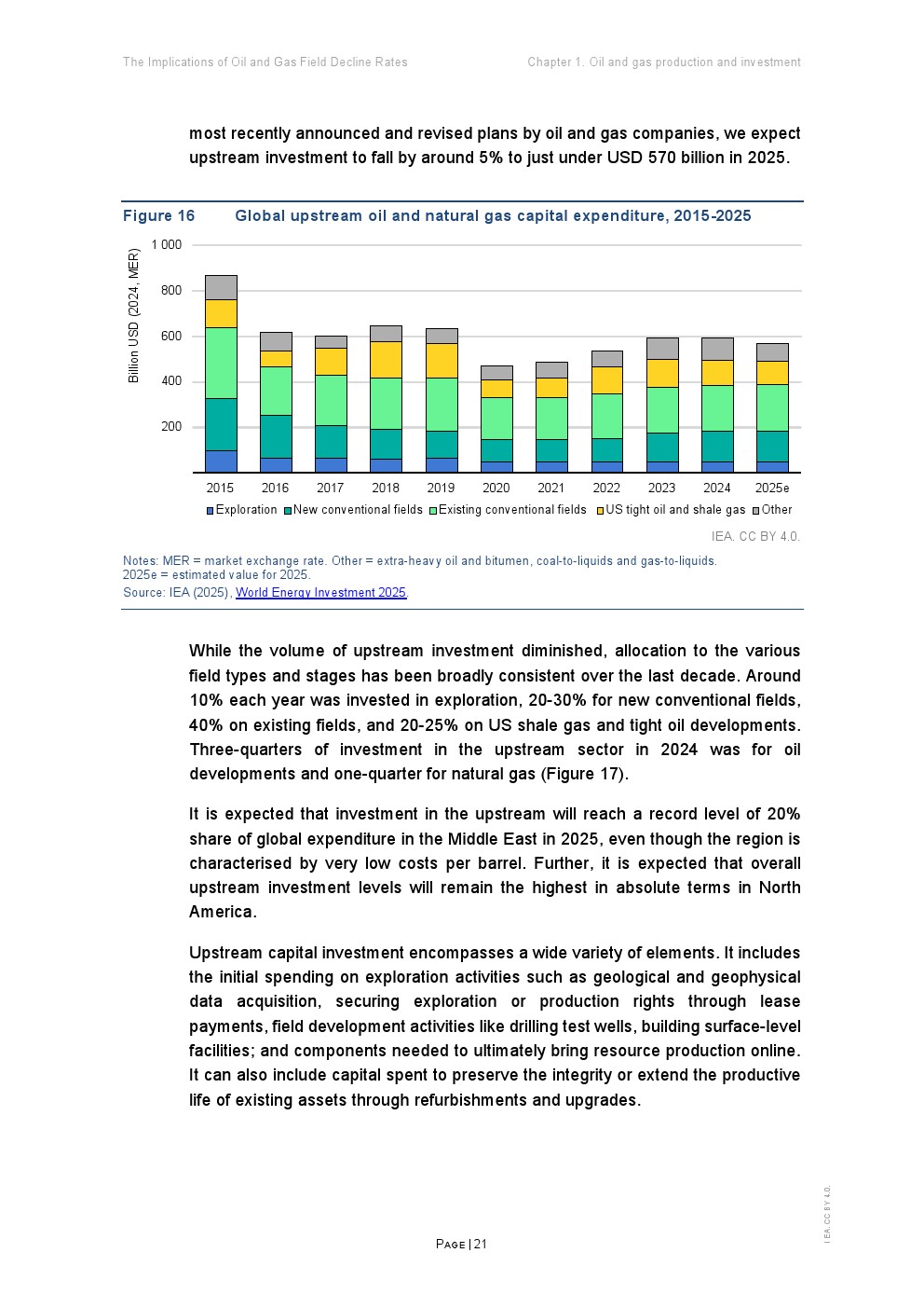 报告指出,当前全球能源讨论过度聚焦需求侧,而供给侧的“递减率”正在成为决定市场平衡的核心变量。自2019年以来,约90%的上游投资仅用于对冲既有油气田产量衰减,而非新增供给。预计2025年全球上游投资约5700亿美元,但即便小幅下降,也可能使供应由增长转为停滞。这一结构性特征意味着,维持产量本身已成为资本密集型任务。