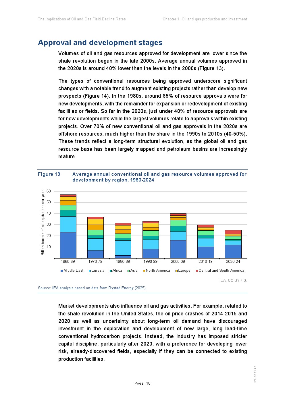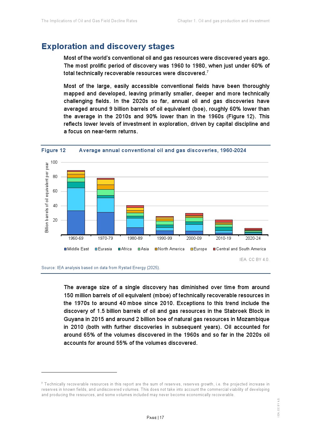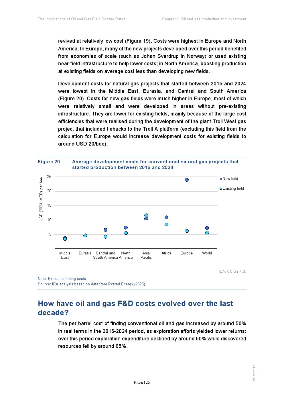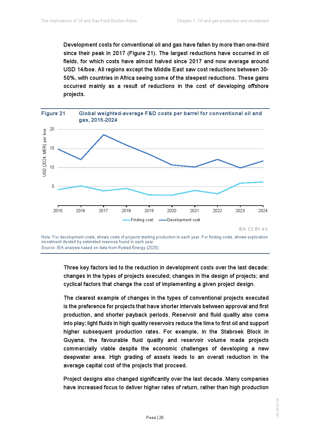 从投资与成本角度看,行业呈现“高投入、低发现”的结构。2020年代年均新增发现约90亿桶油当量,较1960年代下降90%;单个发现规模从1.5亿桶降至4000万桶 。与此同时,开发成本虽较2017年下降超过三分之一,但勘探成本上升约50%,反映资源获取难度加大。