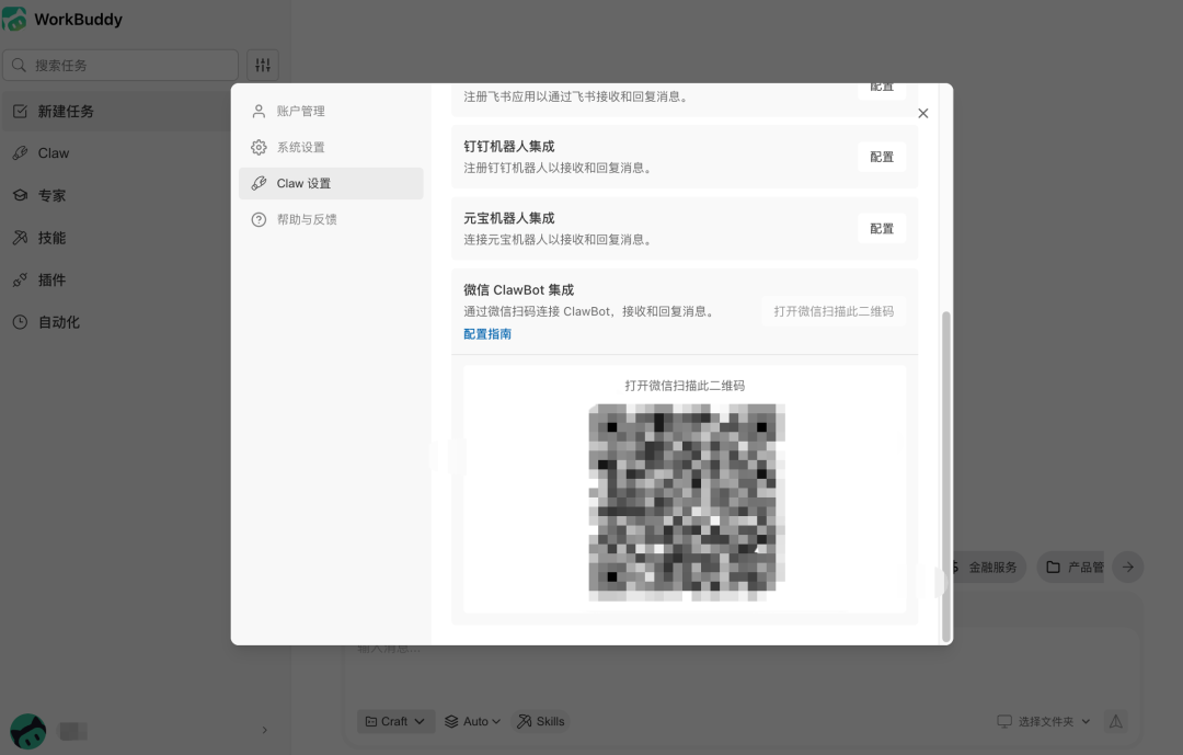 并且, 在微信 ClawBot 插件上线之后,WorkBuddy 选择第一时间跟进适配 。现在,在电脑端打开 WorkBuddy,进入「Claw 设置」,选择「微信 ClawBot 集成」并点击配置,扫码即可一键完成绑定。