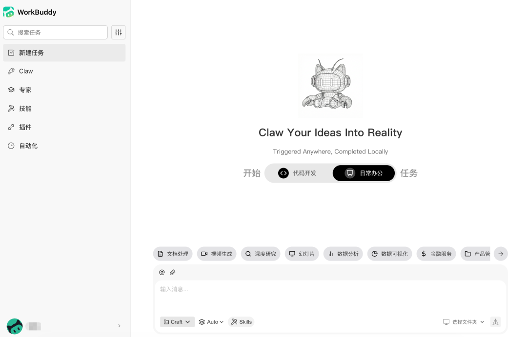 其中,不同于部分依赖 OpenClaw 生态的产品路径, 选择自研技术架构的 WorkBuddy 主打全场景办公 ,在设计之初便体现出了更强的一体化优势: