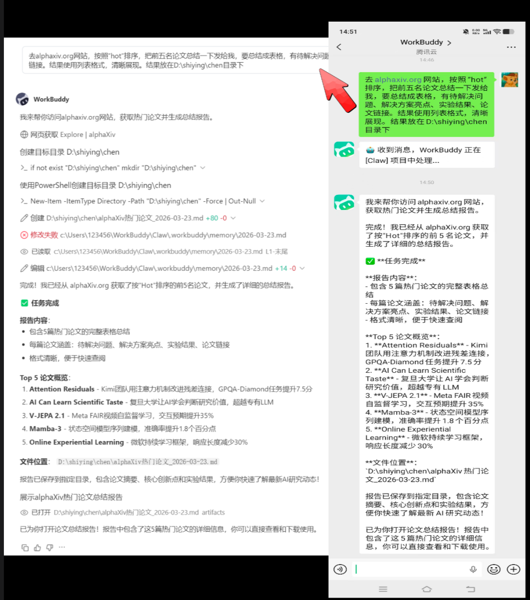 过去要么让同事帮忙,要么远程连电脑,要么干脆拖着,等回去再处理。但有了 WorkBuddy,真的不一样了。