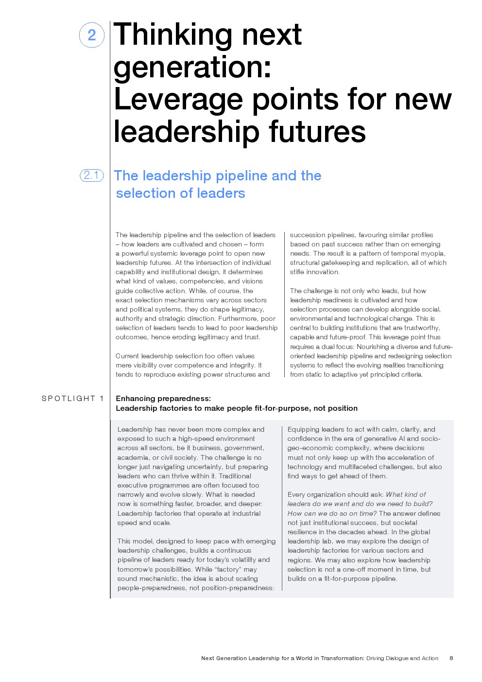 从供给端看,领导力“生产机制”存在明显缺陷。传统选拔体系倾向复制既有权力结构,忽视多元与潜力,导致“结构性同质化”。报告提出需构建更具包容性的领导力管道,通过针对性培养与加速机制提升多样性,并引入价值导向评估工具。核心逻辑在于,将领导力视为“可再生社会资源”,从一次性选拔转向持续培养体系。