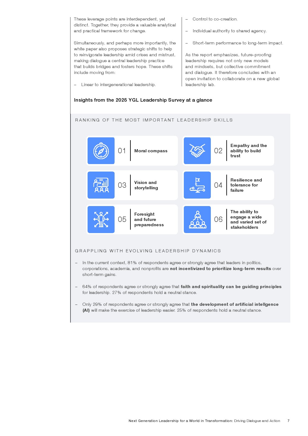 在能力培养维度,数据进一步揭示训练模式滞后。45%的领导者认为生成式AI使决策更复杂,同时大量培训仍停留在理论层面 。未来训练需向“体验式+终身学习”转型,强化伦理判断、跨领域认知与心理韧性。值得注意的是,64%的受访者认可信仰或精神价值对领导力的重要性,反映出“内在驱动”正成为新型领导资本。