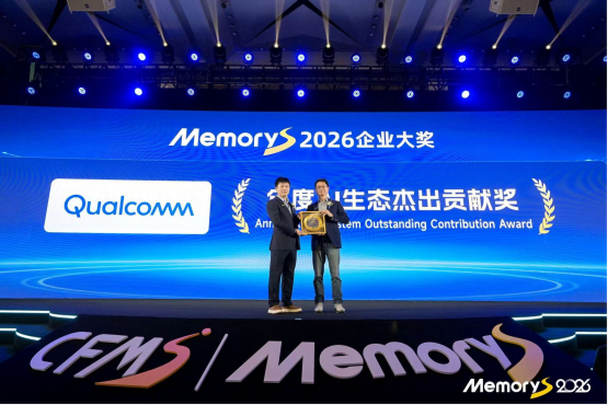 此外,为表彰产业链内的杰出企业与领军人士,彰显行业标杆力量,MemoryS大奖也在本次峰会期间颁布,通过将业务从智能手机扩展至个人AI与智能可穿戴设备、PC、汽车、边缘网络以及工业物联网等广泛边缘领域,引领构建“边缘智能生态”,推动AI在万物互联终端上真正实现低延迟、高安全的本地化落地,高通公司荣获“年度AI生态杰出贡献奖”。