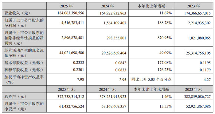 截至 2025 年末,公司总资产 3727.38 亿元,归属于上市公司股东的净资产 614.33 亿元,同比增长 15.55%;资产负债率 64.23%,较上年末下降 0.69 个百分点,财务结构持续优化。公司董事会提议 2025 年度每 10 股派发现金红利 0.9 元(含税),以总股本 208.01 亿股为基数,共计分配利润 18.72 亿元,与全体股东共享企业价值成长。
