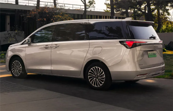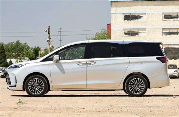 车身侧面为MPV经典侧滑门布局,车窗采用深色隐私玻璃,配备多辐式铝合金轮毂,腰线流畅贯穿至车尾。
