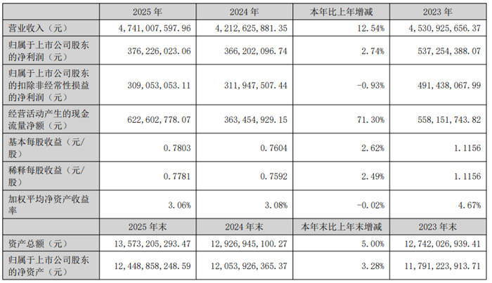 2026 年 3 月 28 日,北京君正集成电路股份有限公司(证券代码:300223,证券简称:北京君正)发布 2025 年年度报告。报告显示,公司全年实现营业收入 47.41 亿元,同比增长 12.54%;归属于上市公司股东的净利润 3.76 亿元,同比增长 2.74%;扣除非经常性损益后的归属于上市公司股东净利润 3.09 亿元,基本每股收益 0.78 元,加权平均净资产收益率 3.06%,整体经营稳健增长。