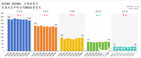 马上赢品牌CT对于渠道店均在售SKU数量的监测数据显示,2024-2025,传统线下零售渠道中,除便利店以外的所有业态,方便面类目的店均SKU数量都或多或少有缩减。