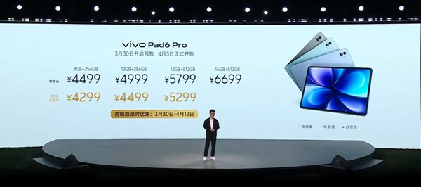 最后是vivo Pad6 Pro,8+256GB售价4299元、12+256GB售价4499元、12+512GB售价5299元、16+512GB售价6699元。