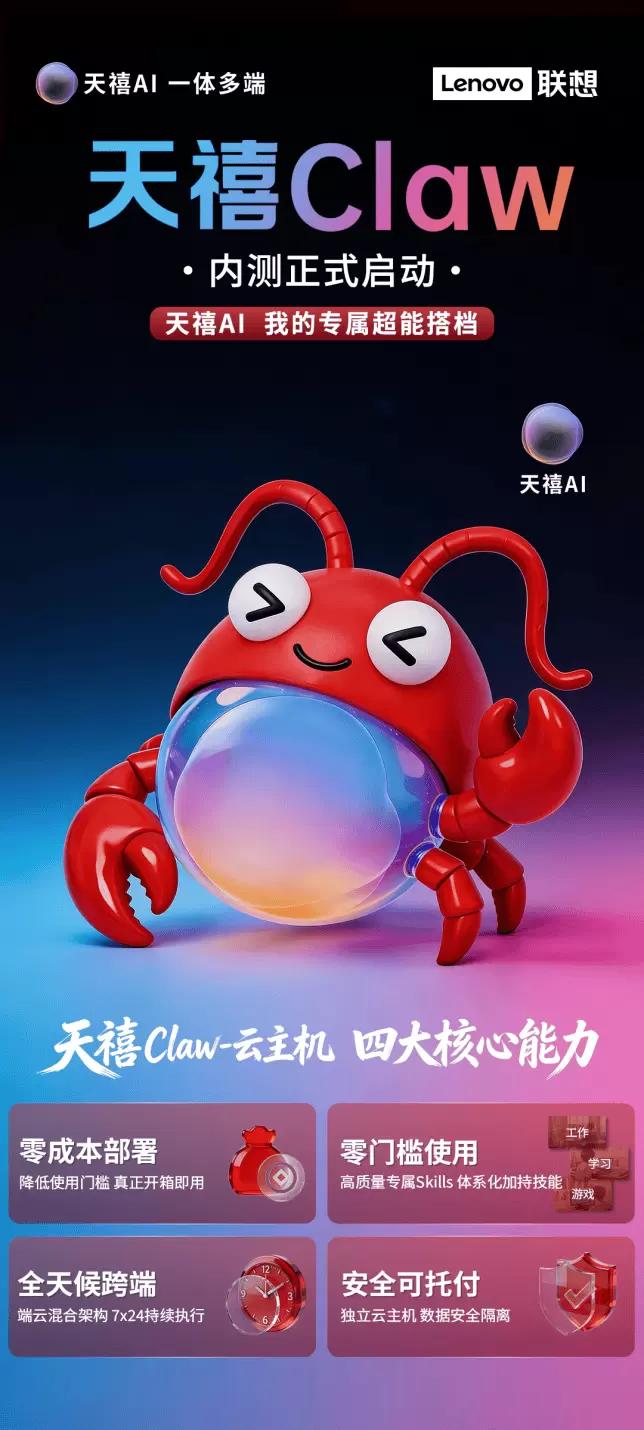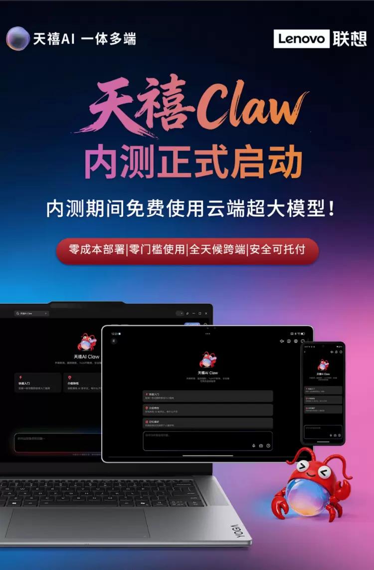 没错,用户苦“陪聊AI”久矣。我们不仅需要AI能提供信息,更需要的是一个深植于系统之中、不仅能听懂指令,还能真正替用户操作设备、执行复杂任务的专属超能搭档。为此,联想于3月18日正式发布天禧Claw,而随着3月30日先锋计划内测的全面开启,我们终于看到了AI从“对话工具”向“生产力搭档(Agent)”跨越的真实模样。