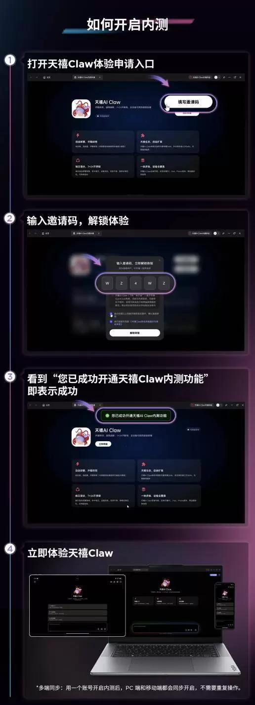 想要提前感受生产力跨越的用户,可以通过以下步骤快速接入天禧Claw。