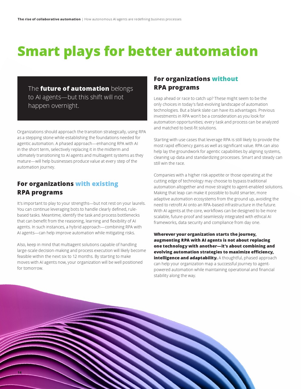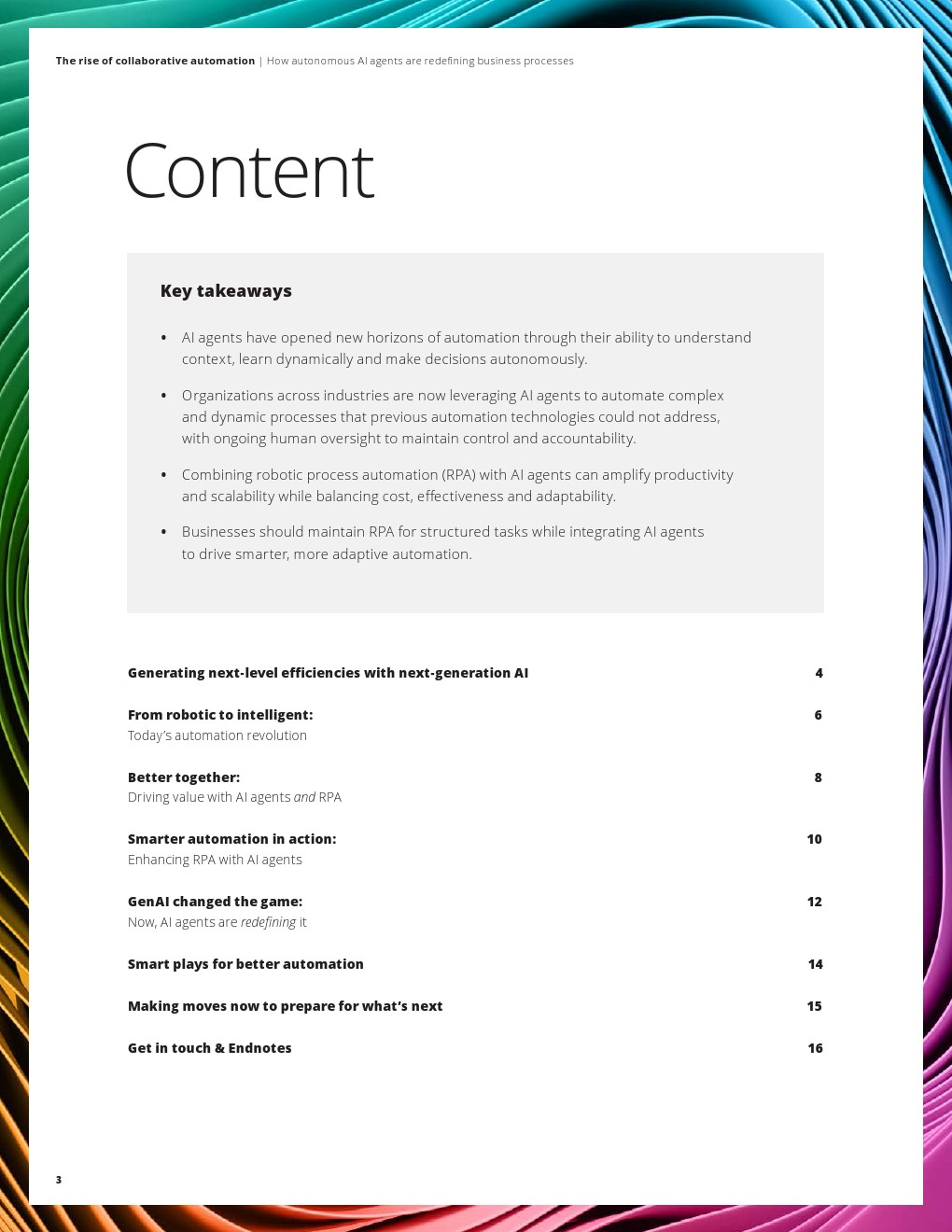 整体来看,自动化的竞争焦点正从“效率提升”转向“能力重构”。AI代理将逐步承担流程设计、执行与优化的核心角色,企业运营模式也将由线性流程转向智能网络结构。随着多代理协同与跨领域智能的成熟,自动化将呈现出更强的自适应与自进化能力,推动企业从数字化运营迈向真正的智能化运营阶段。