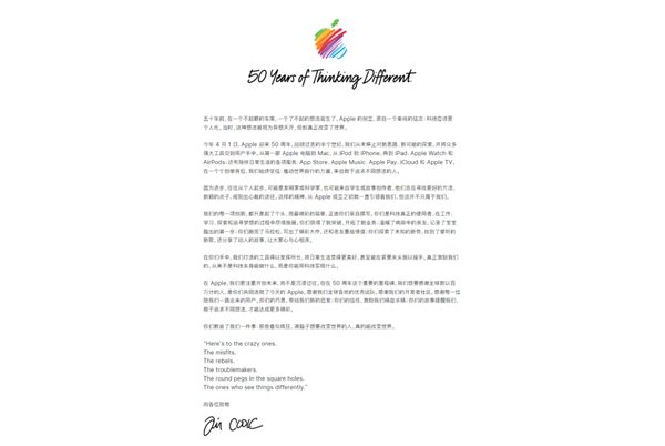 要是人一旦到了这个年纪,照咱们这边的说法,那叫 “ 知天命 ”,但一家科技公司到了 50 岁,还能不能知天命?或者说,它还是当年那个 Think Different 的苹果吗?