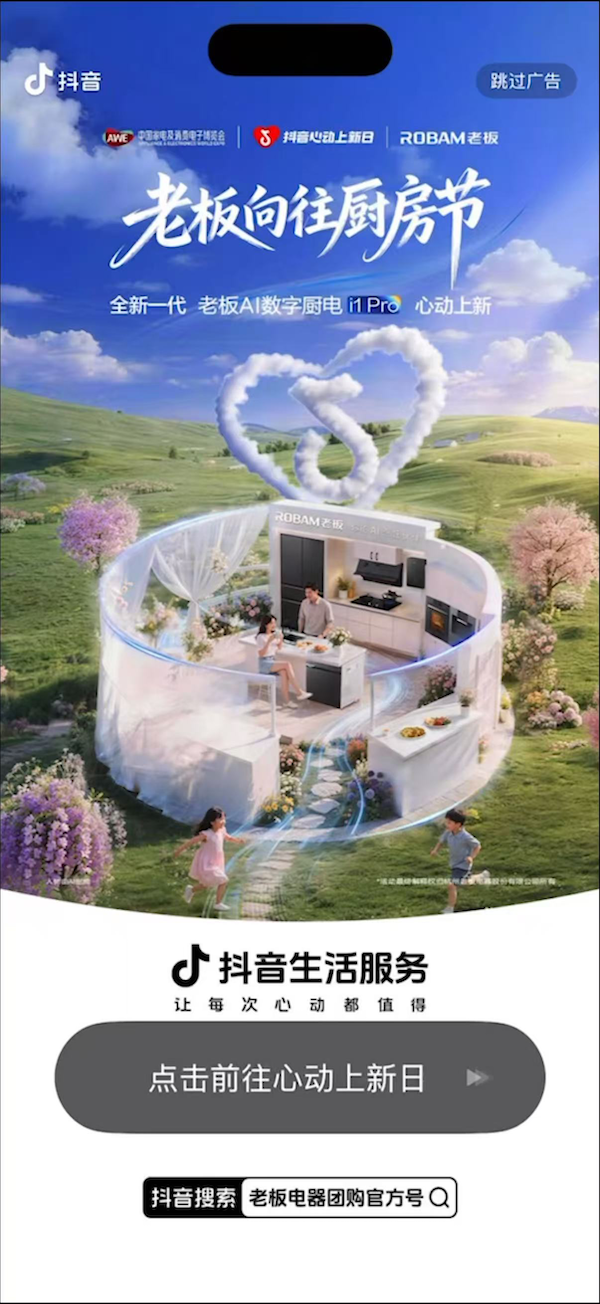 本次活动,老板电器携手「抖音心动上新日」,成功打造了一场集“新品首发、场景创新、AI赋能”于一体的年度营销案例。通过打破常规的“采风式”慢直播,品牌将冰冷的科技产品,转化为充满温度和想象力的生活方式提案。全新一代老板AI数字厨电i1 Pro成功走进用户视野的同时,更在用户心中种下了关于“向往的厨房”的美好种子。最终,活动实现了从声量破圈到销量稳增的全链路转化,再次证明了「抖音心动上新日」作为品牌新品首发首选阵地的IP价值,也为家电行业的营销创新提供了新的参考。