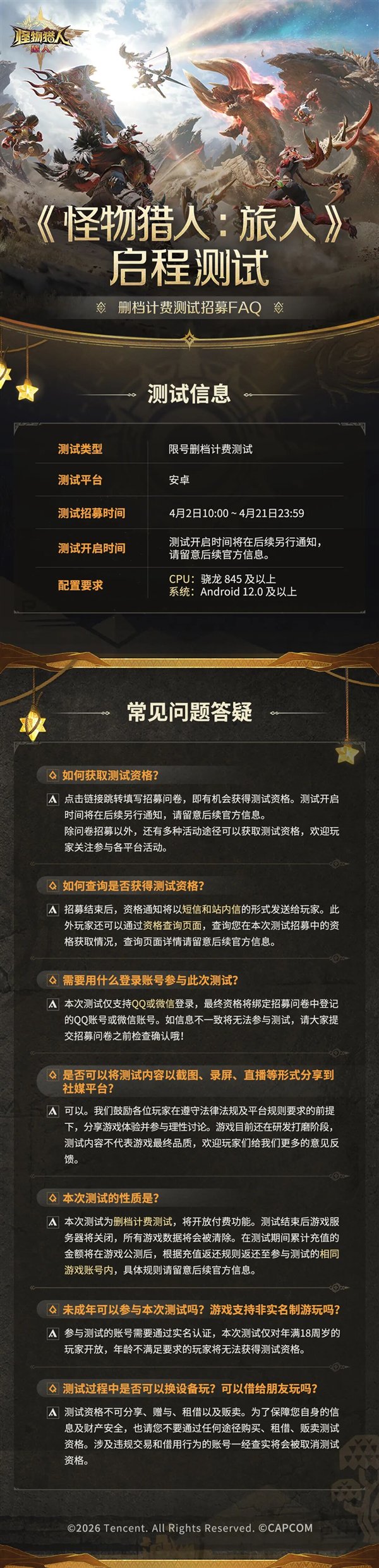 未经允许不得转载:紫竹林-程序员中文网 » 腾讯、卡普空联手打造!《怪物猎人:旅人》开启二测招募:支持安卓