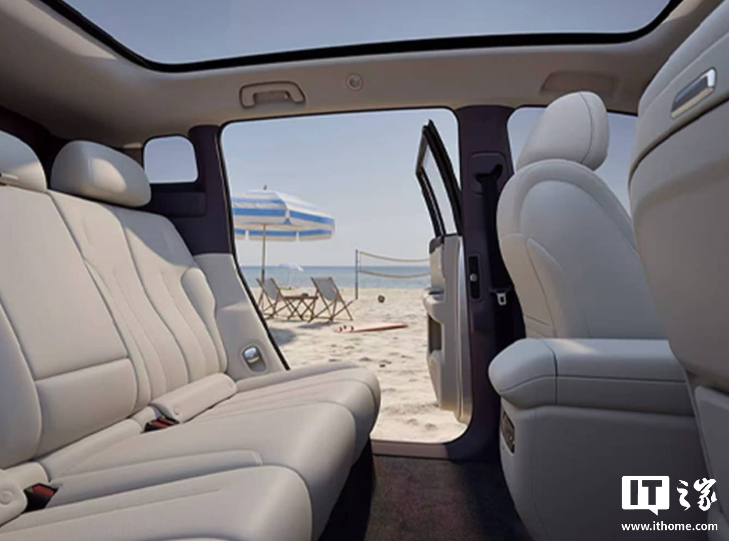 内饰方面,其可选柔光舞白、焦糖暖绒、晨雾冷灰 3 种主题,全系标配副驾零重力座椅、前排座椅标配加热 / 通风 / 按摩 / 记忆;二排座椅靠背角度 117°~137° 无极可调。近 90° 最大后门开启角 +410mm 最低门槛,同时配备同级最大 2.38㎡全景天幕 + 电动遮阳帘。