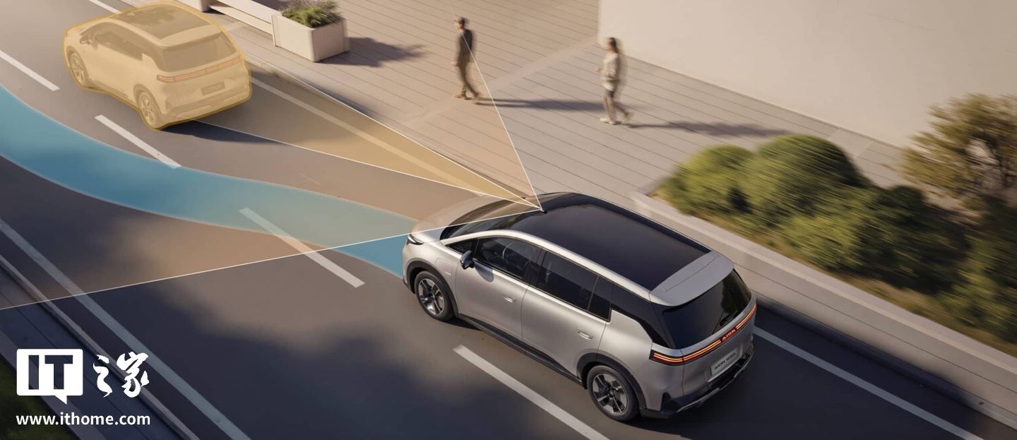 座舱方面,该车搭载 15.6 英寸 2.5K 中控,内置 ADiGO 6.0 系统,标配全场景高阶智能辅助驾驶,采用文远 L4 级同源一段式端到端大模型;标配 4D 毫米波雷达 + 激光雷达,支持全场景智能泊车。