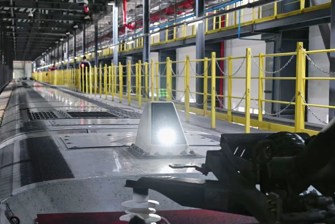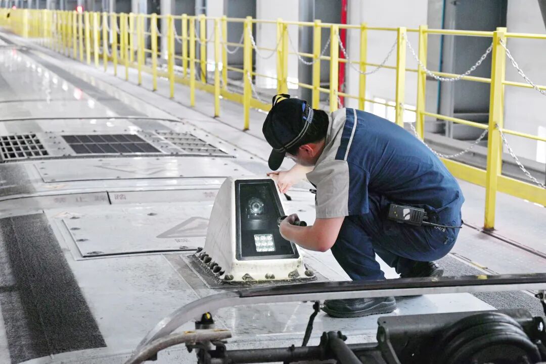 在动车“4S店”,动车组受电弓监控装置会定期进行全面检修保养,确保列车的每一趟旅程都安全可靠。