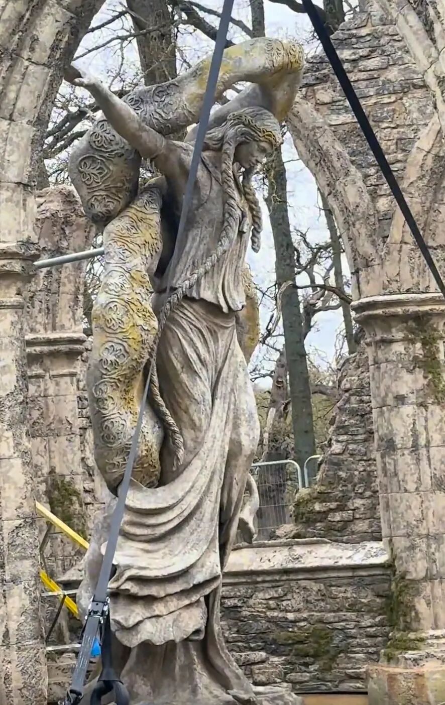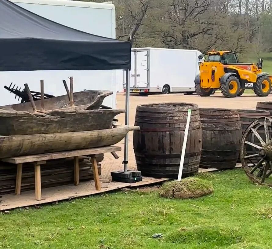 面对质疑,这位博主很快就回应称,他是在英国某地发现的这些场景,随后去现场拍摄了更多素材,更多角度地展示了这个片场:新视频除了从另一个角度展示玛莉卡教堂和女王雕像之外,还出现了大量马车和木桶等置景道具。