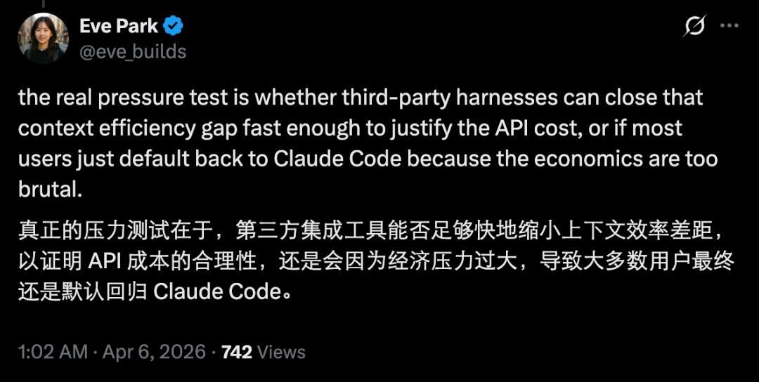 罗福莉认为成本压力会倒逼框架进化,但开发者们提出了一个更残酷的问题:第三方框架能不能足够快地把效率差距补上,让 API 定价在经济上仍然说得过去?还是大多数用户发现成本太惨烈,直接默认回到 Claude Code?