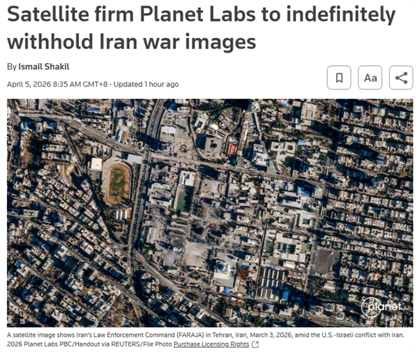 星球实验室:无限期暂停发布伊朗及中东冲突地区卫星影像