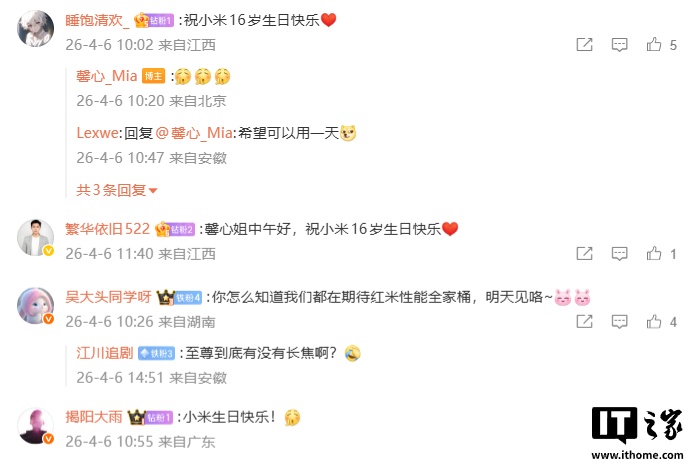 IT之家 4 月 6 日消息,小米 REDMI 产品经理胡馨心今日发布视频,庆祝了米粉节的到来。