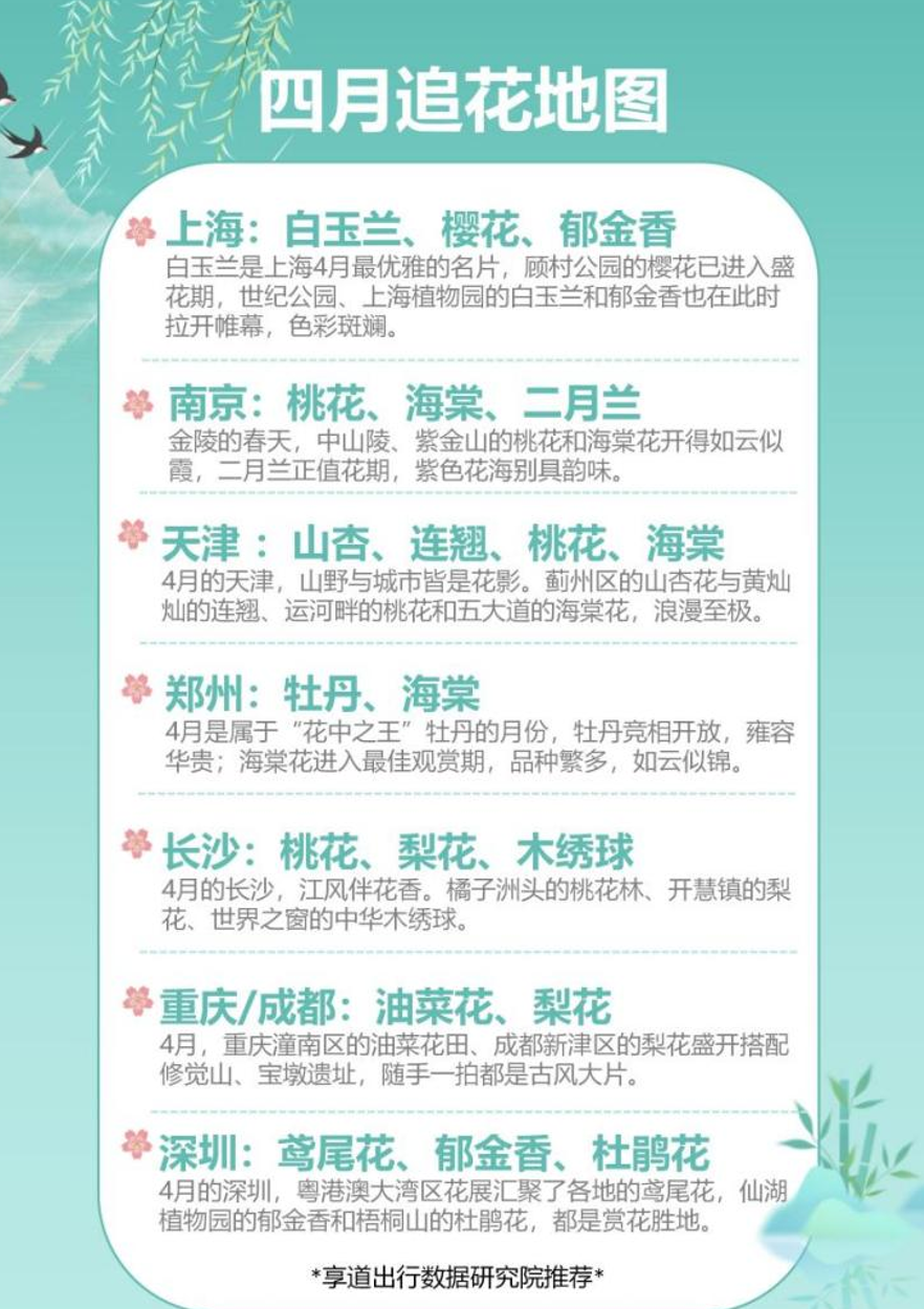 一年好景在清明,清明假期正是踏青赏花的好时节。报告显示,长三角地区踏青赏花著名景点的出行需求环比增幅明显;其中,上海辰山植物园为目的地和出发地的需求增幅超三倍,南京鸡鸣寺出行需求也实现了大幅攀升。全国来看,各大文化名山、国家森林公园、郊野公园等目的地需求量环比增幅近50%,市民纷纷外出踏青赏花,悦人悦己,迎来新一年的盎然生机。