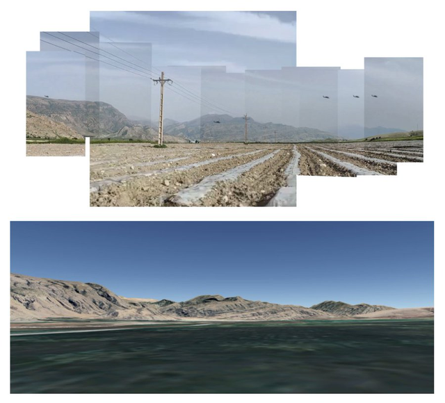 将图像进行拼接,可以勾勒出美军飞机残骸所处环境的地貌。