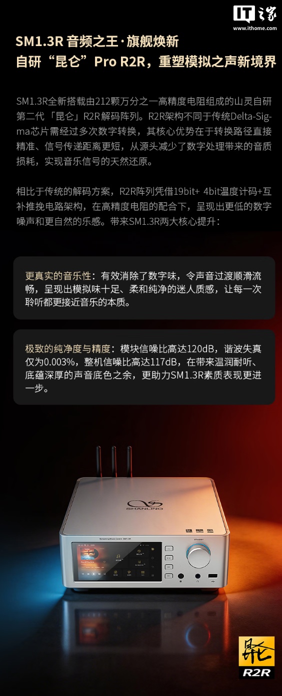 山灵 SM1.3R 流媒体数播解码一体机预约开启:昆仑 Pro R2R 解码阵列、全新 UI,8998 元