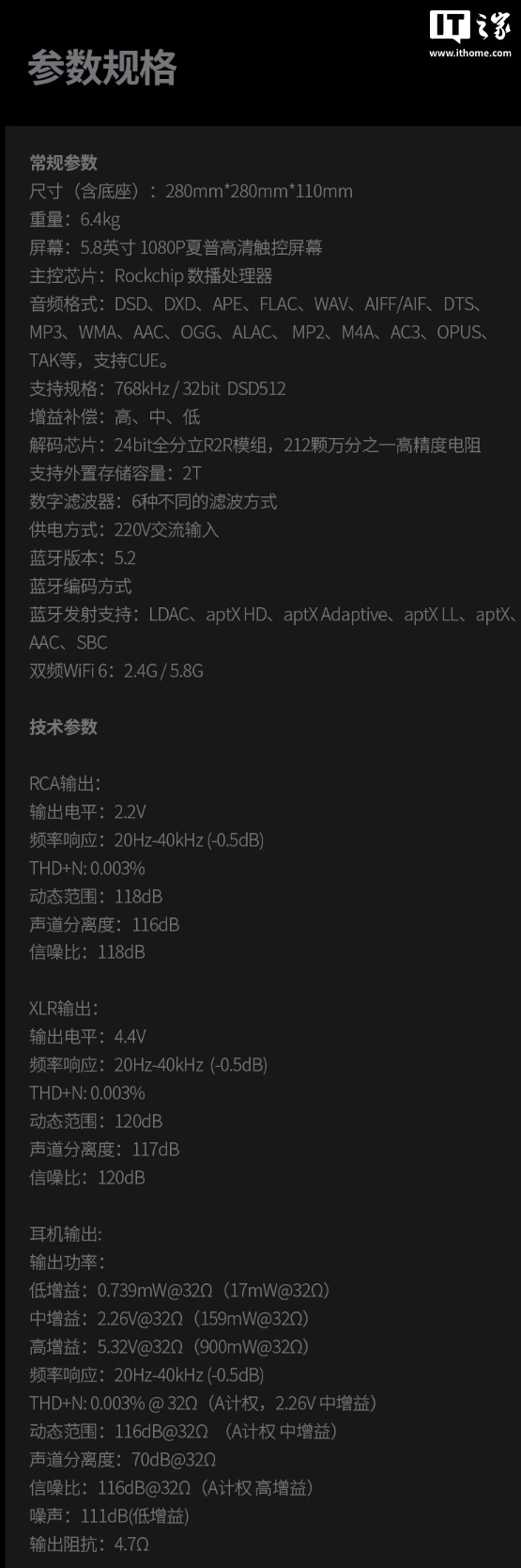 IT之家附该播放器详细参数如下: