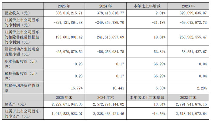 2025 年,勤上股份实现营业收入3.86 亿元,同比增长2.01%;归属于上市公司股东的净利润-3.27 亿元,同比下降31.18%;扣除非经常性损益后的净利润-1.94 亿元,同比减亏19.84%。经营活动产生的现金流量净额-2597.06 万元,较上年同期改善53.84%。