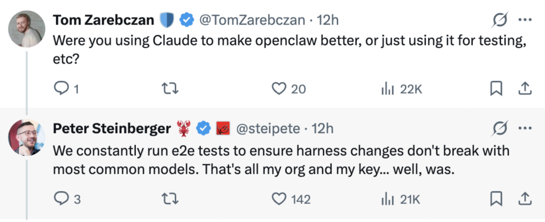 今天一大早,OpenClaw 创始人 Peter Steinberger 就在 X 上发文: 「是的,各位,未来要确保 OpenClaw 继续与 Anthropic 模型兼容将会更加困难。」
