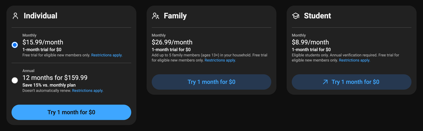 虽然此次涨价幅度不算太大 —— 作为对比,Netflix 近期也涨价 2 美元,且是不到两年内的第二次调价 —— 但很显然不会受到用户欢迎。Premium 订阅用户可通过 YouTube 会员中心取消订阅,也可选择暂停订阅最长六个月。个人版用户选择按年支付可节省 15%,折合每月 13 美元出头。