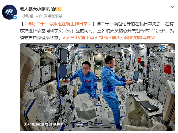 IT之家 4 月 12 日消息,中国载人航天工程办公室今日发布新一期天宫 TV,神舟二十一号航天员张陆、武飞、张洪章目前已经在轨 160 余天,状态良好。上周,乘组在有序推进各项空间科学实(试)验的同时,精心开展组合体平台照料,并持续守护自身健康状态。