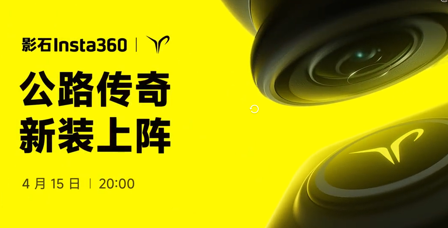 IT之家 4 月 12 日消息,影石官方今天宣布,4 月 15 日晚 20:00 将发布一款新品,宣传语“公路传奇,新装上阵”,感兴趣的小伙伴们可以关注IT之家后续报道。