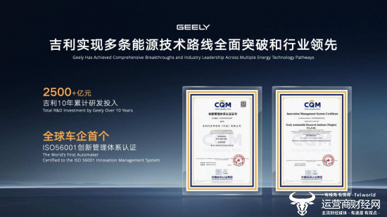 造车28年来,吉利汽车集团始终坚持能源多元化发展路径,在“两个蓝色吉利行动计划”指引下,已率先构建起覆盖纯电、混动、增程、甲醇、换电、高效燃油等多能源技术体系。凭借神盾金砖电池、雷神AI电混2.0、SEP浩瀚超级电混、绿色甲醇能源等一系列创新动力技术,吉利汽车集团在多条能源技术路线上实现全面突破和行业领先,与雷诺组建全球最大动力公司HORSE,向全球25家豪华及主流车企输出领先动力技术;搭载最强2.0T动力的星瑞TCR赛车,承袭领克7年9冠的荣誉,将征战世界最高等级TCR赛场,不断将中国动力技术推向世界舞台。近期,吉利汽车集团还荣获全球车企首个ISO 56001创新管理体系认证,标志着国际标准组织对吉利系统化创新能力的权威认可。