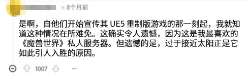 不少玩家因此联想起十年前的N服(nostalrius)关停事件,当时暴雪以私服运营破坏游戏使用条款为由起诉N服并使其关停,随后N服运营者收集了约25万名玩家签名前往暴雪总部,表达玩家对怀旧服的需求。这一事件也被广泛认为是暴雪日后推出官方怀旧服的主要原因之一。
